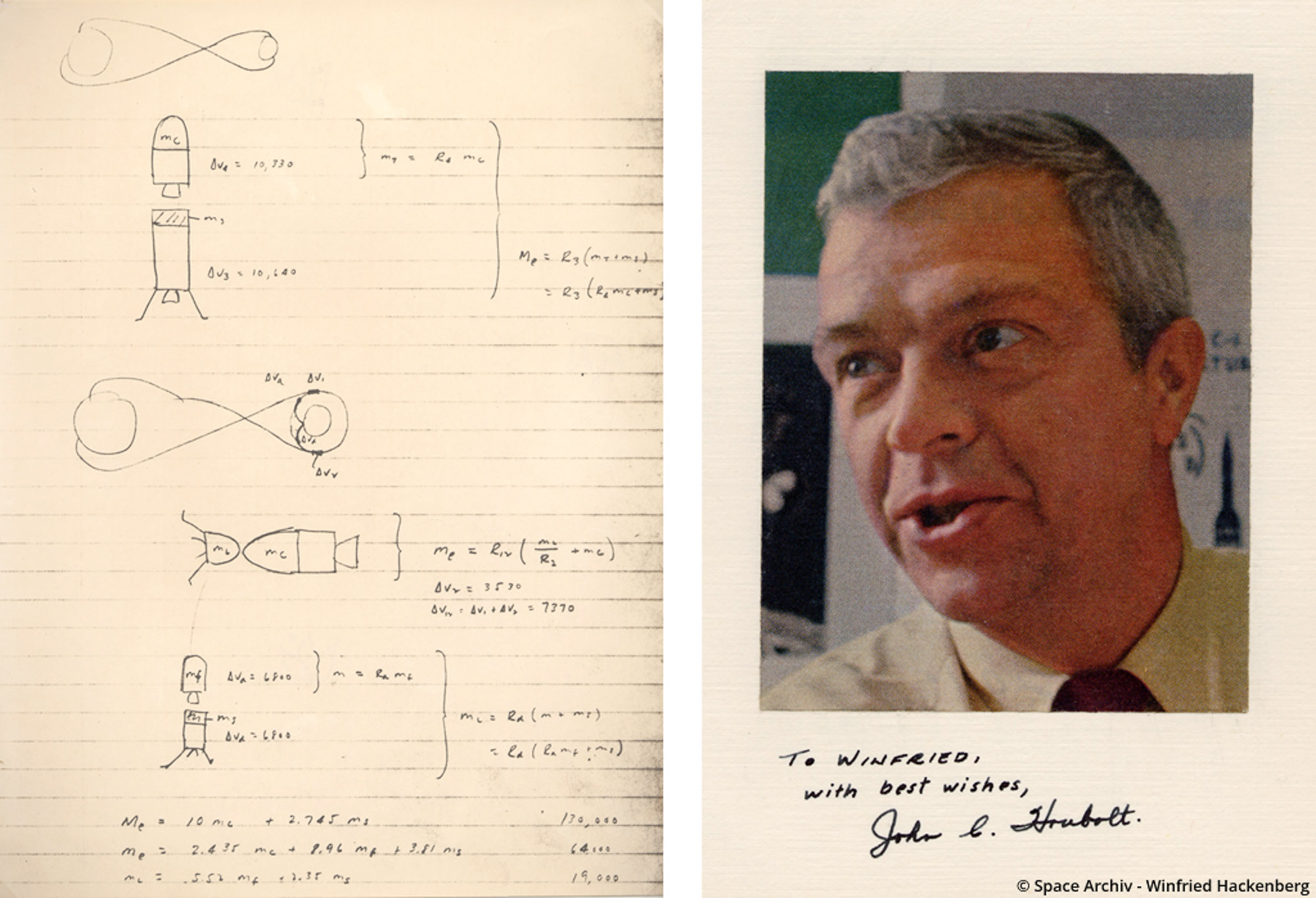 Der erste Lösungsentwurf zur Realisierung der Mondlandung von Houbolt skizziert.
