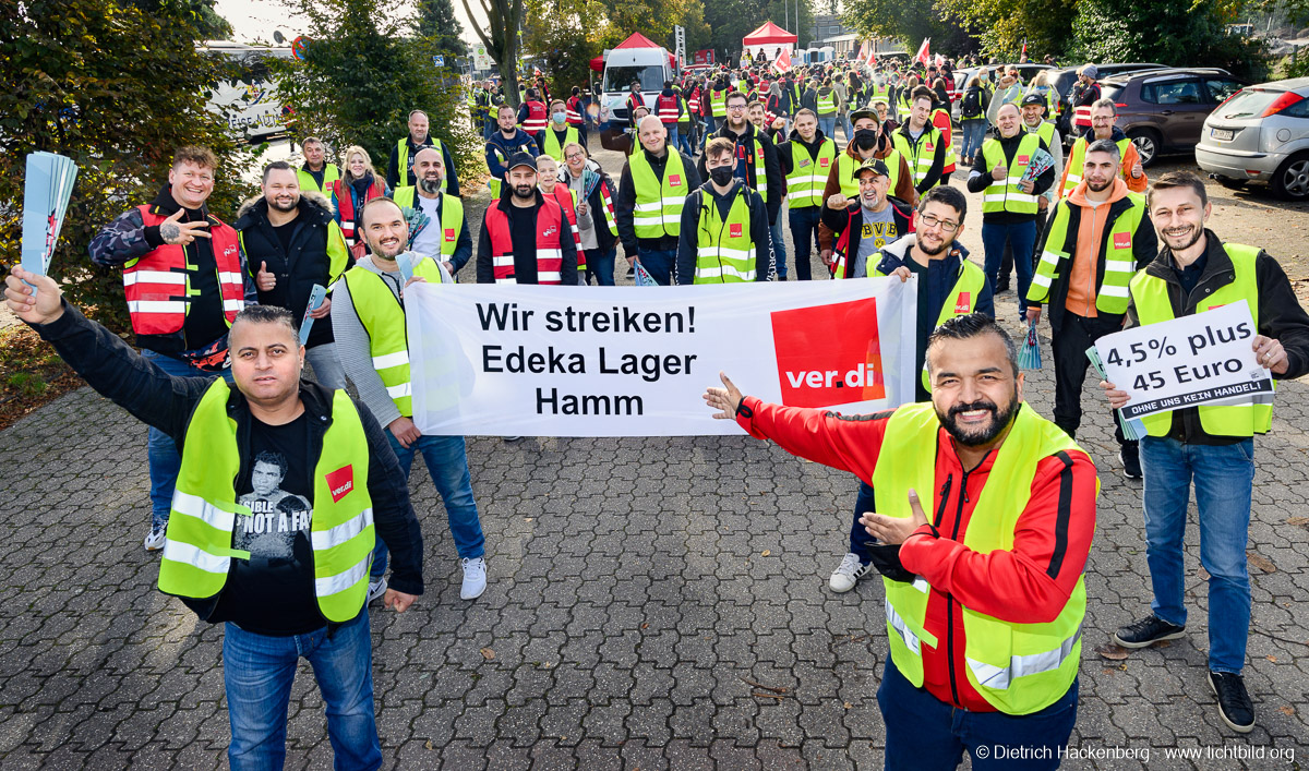 • at 1200 × 707 px in ver.di Handel NRW Streikversammlung und Zug zur Edeka-Verwaltung in Moers am 30.09.2021